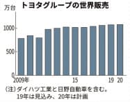 トヨタグループの世界販売は14年以降1000万台を越えており、17年に過去最高の1038万台を記録した。19年見込みは、18年実績比1%増の1072万台としており、海外市場の減速が響き昨年発表した当初計画より4万台下回る。