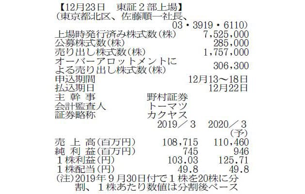 「なんでも酒やカクヤス」などのブランドで、飲食店や個人向けにビールやワインなどの酒類を販売する事業を手掛ける。銀座や六本木など東京23区内を中心に店舗を展開。店頭での販売もするが、顧客先まで届ける販売を主力とする。売上高の約7割は飲食店など業務用が占める。