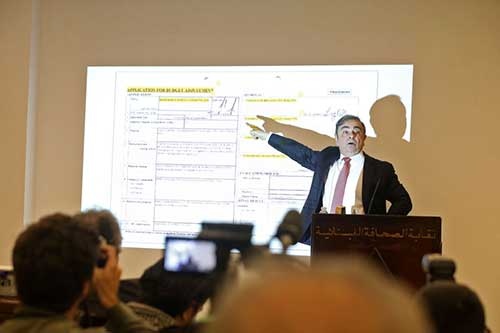8日にレバノンのベイルートで開催した記者会見で、カルロス・ゴーン氏は日産自動車の幹部を激しく攻撃した(写真:Bloomberg / Gettyimages)