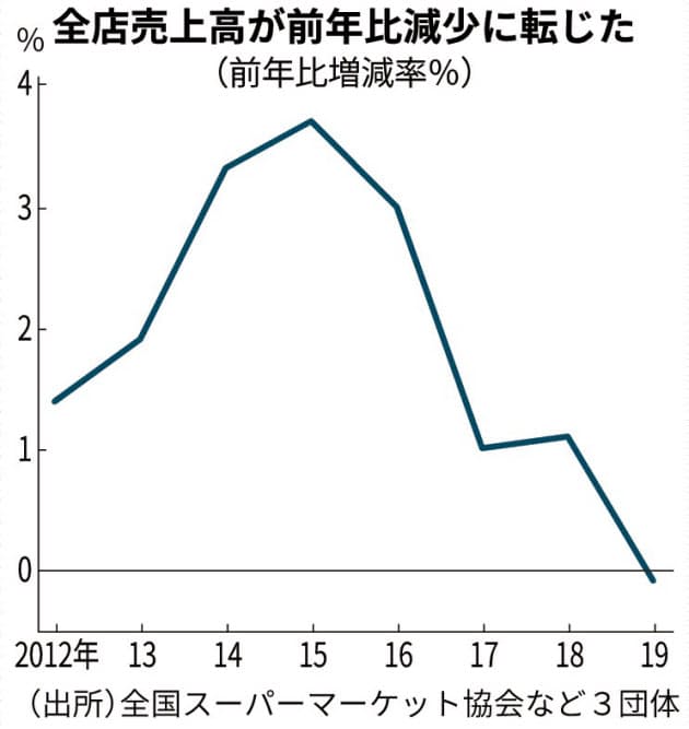 食品スーパー売上高、前年割れ - 日本経済新聞
