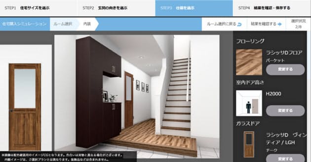 住宅メーカーのライフデザイン・カバヤ(岡山市)はウェブサイトで最安で898万円(税別)からの木造住宅の販売を始めた。用意した建設条件44項目の選択肢を段階的に画面に提示、施主だけで住宅をシミュレーションしながらプランを作成できる。相談を受ける担当者らの人件費を抑え、低価格化を実現、初年度100棟の販売をめざす。