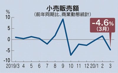 新型コロナ:3月の小売販売4.6%減、百貨店は過去最大の3割減 - 日本経済新聞