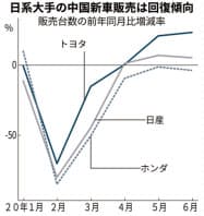 中国汽車工業協会によると、中国全体の6月の新車販売台数は前年同月比11%増の228万台になった見通しで、前年同月実績を3カ月連続で上回る。新型コロナウイルスの感染拡大が深刻だった2~3月の販売は大きく落ち込んだが、4月以降は政府のインフラ投資拡大でトラックなどの商用車が大きく伸びた。購入補助金などの政策で乗用車も持ち直している。