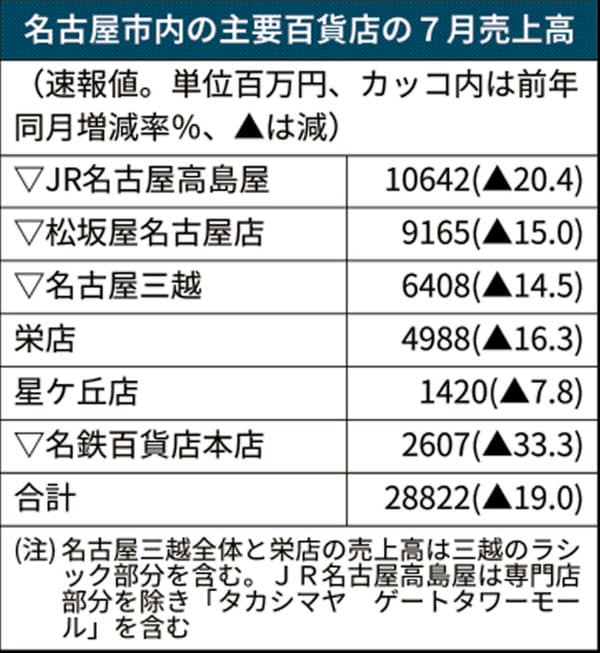 百貨店売上高7月19%減、名古屋市内 減少幅が拡大 - 日本経済新聞